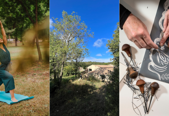 Exploration autour de la méditation, le yoga, le mouvement, l’expression artistique et la gravure.